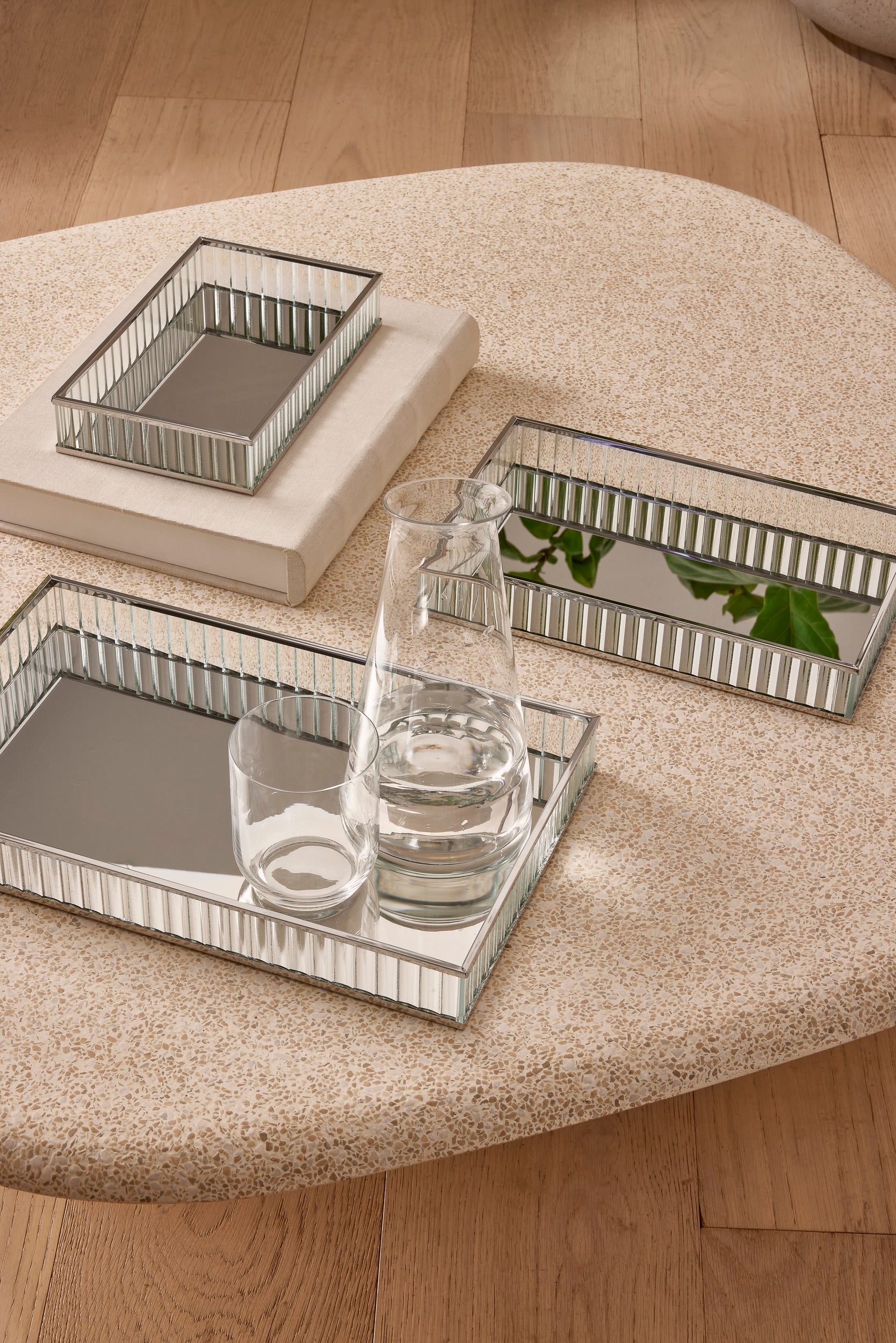 Sua superfície espelhada não só adiciona um ponto de brilho e glamour, mas também tem o poder de refletir a luz, criando uma sensação de maior amplitude e luminosidade no espaço. Use-a como um suporte elegante para suas velas favoritas, para criar um mini bar com taças e garrafas, ou como uma base luxuosa para organizar perfumes e cosméticos no seu quarto ou lavabo.