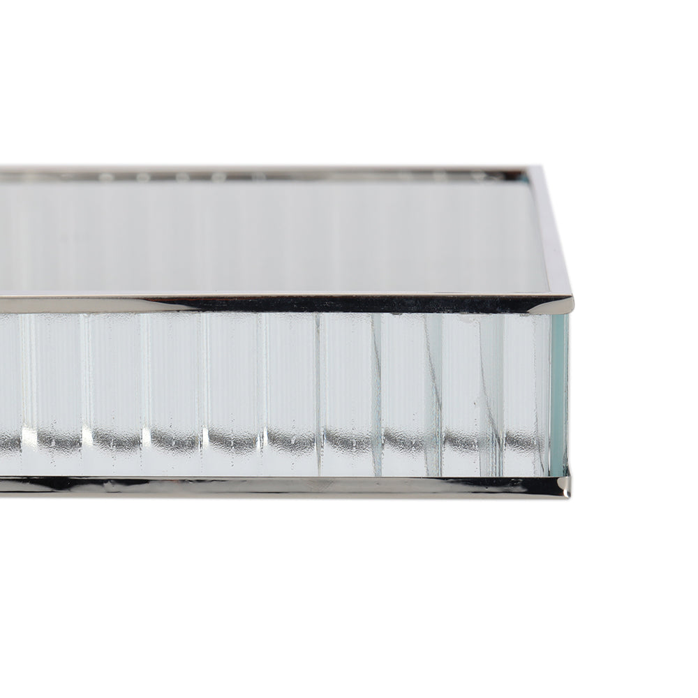 Sua superfície espelhada não só adiciona um ponto de brilho e glamour, mas também tem o poder de refletir a luz, criando uma sensação de maior amplitude e luminosidade no espaço. Use-a como um suporte elegante para suas velas favoritas, para criar um mini bar com taças e garrafas, ou como uma base luxuosa para organizar perfumes e cosméticos no seu quarto ou lavabo.