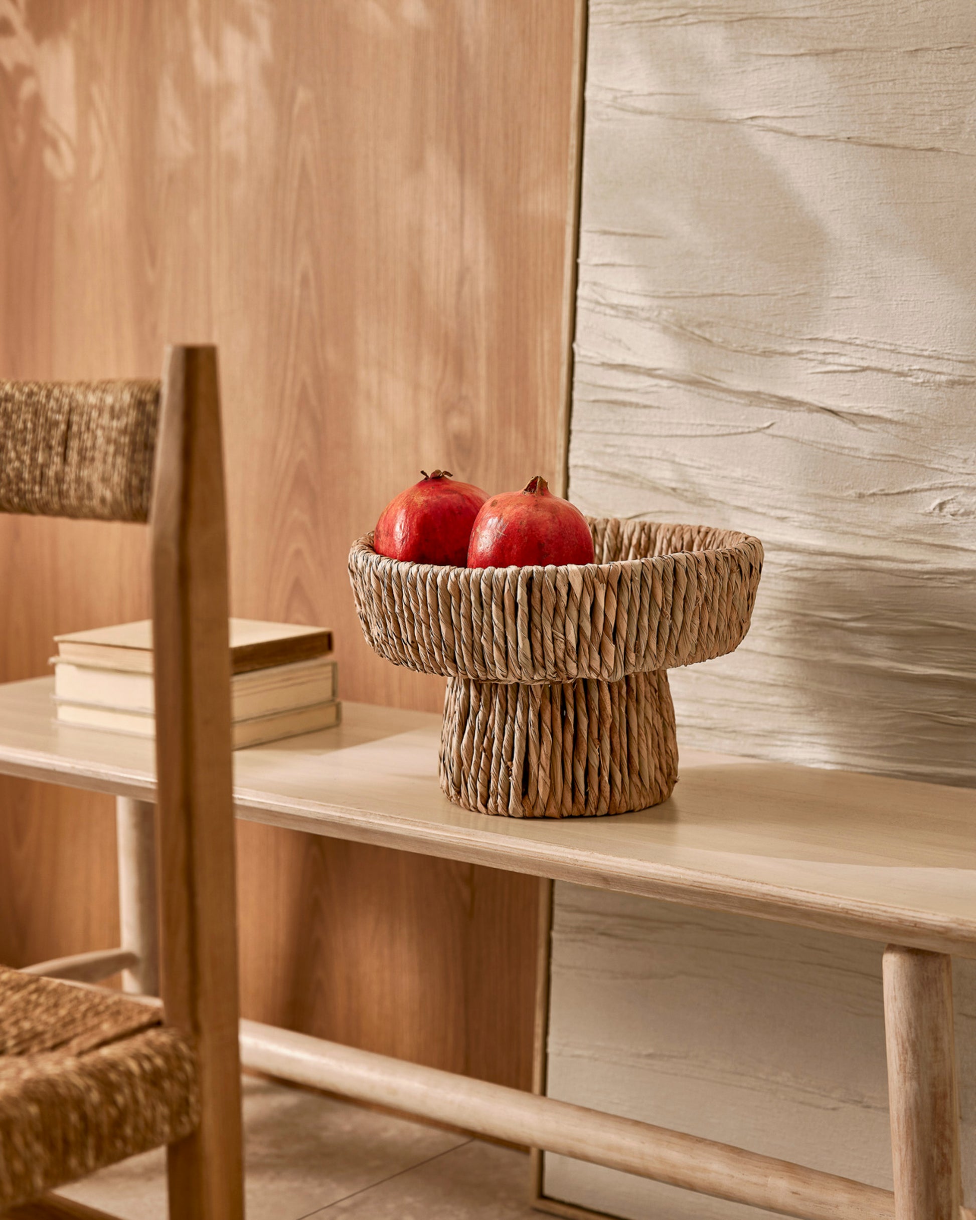 Material: Fibra natural de fonte renovável (ex: jacinto de água, palha, bambu).