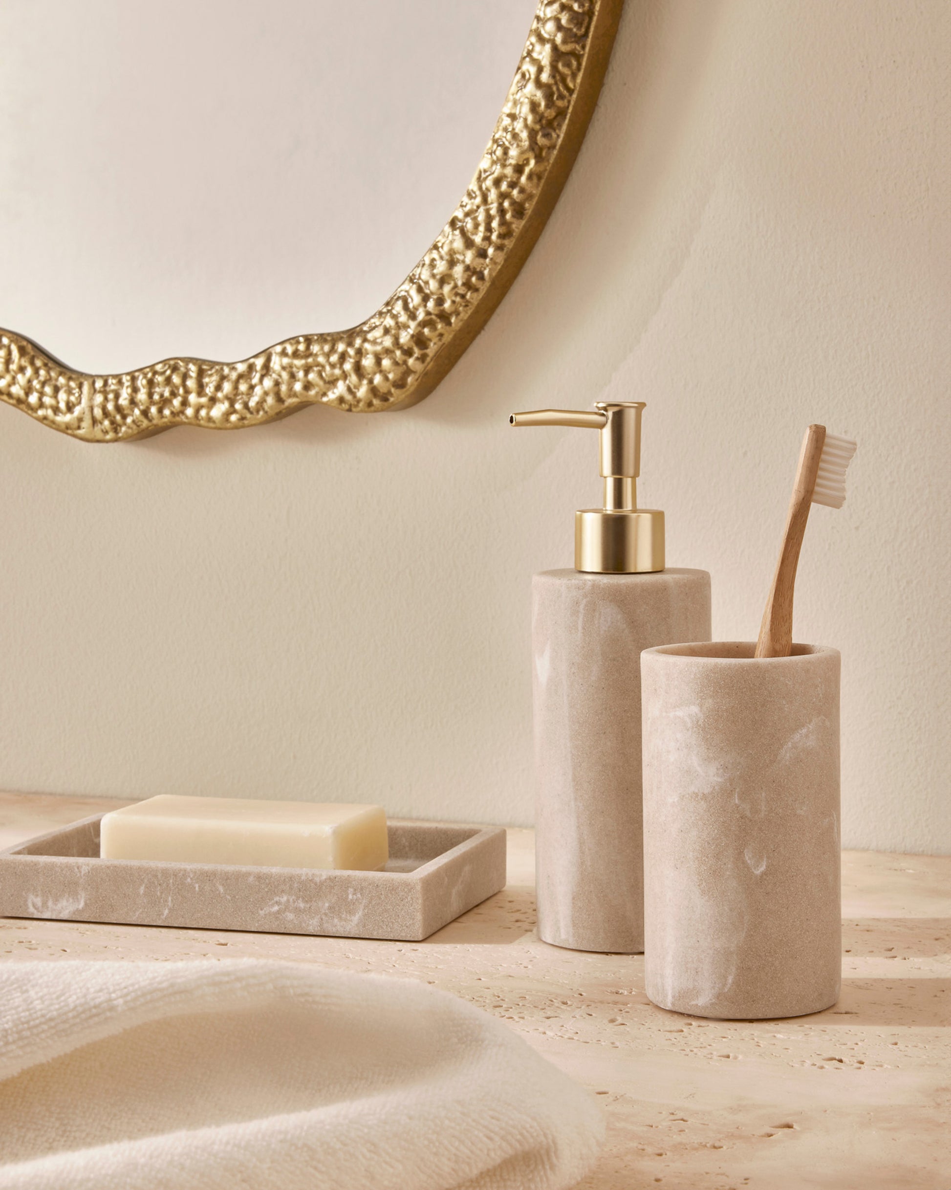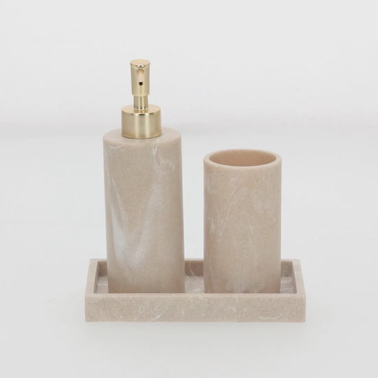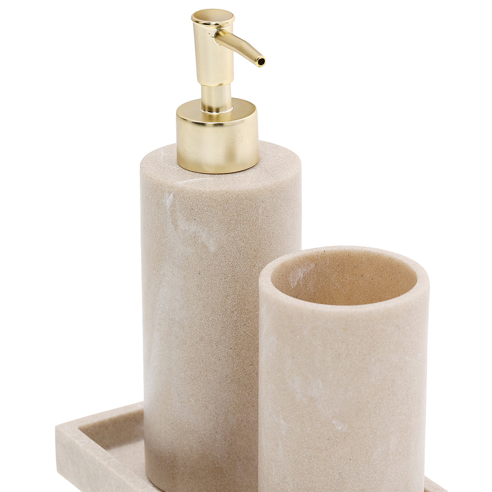 Kit para Banheiro em Poliresina Bege Marmorizado – Um Toque de Luxo Clássico para Seu Lavabo