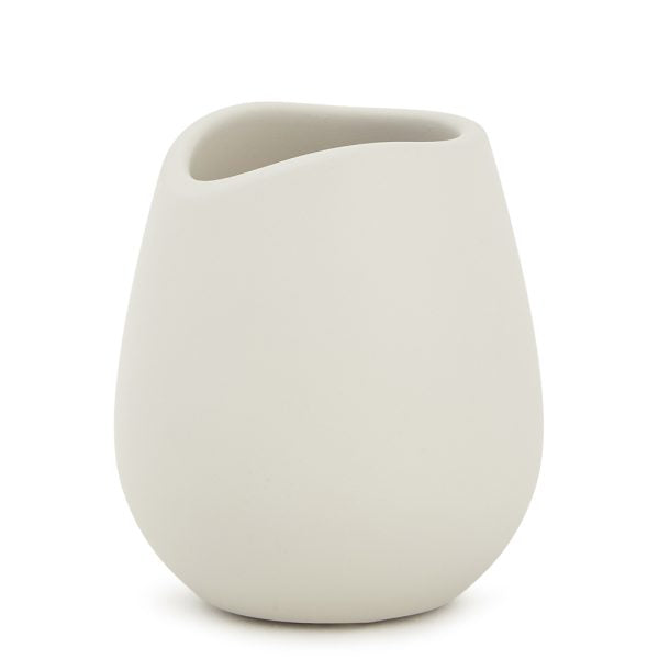 Com um design clean e uma textura singular, ele é perfeito para compor cenários minimalistas em estantes, aparadores e mesas de centro. Sua cor neutra e material autêntico o tornam um item "curinga" que adiciona profundidade e um toque contemporâneo a qualquer espaço. Use-o para organizar seus pincéis de maquiagem com estilo, como base para uma única flor ou folhagem seca, ou simplesmente deixe que ele brilhe como uma pequena escultura.