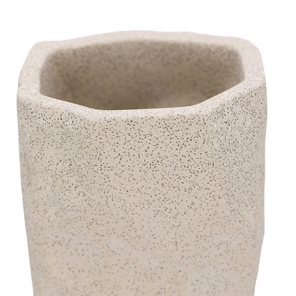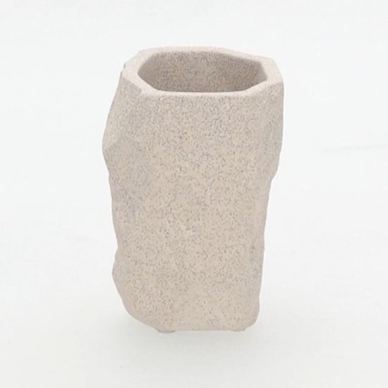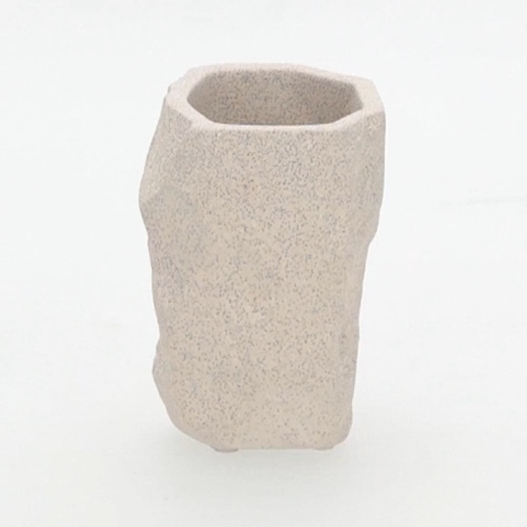 Com um design clean e uma textura singular, ele é perfeito para compor cenários minimalistas em estantes, aparadores e mesas de centro. Sua cor neutra e material autêntico o tornam um item "curinga" que adiciona profundidade e um toque contemporâneo a qualquer espaço. Use-o para organizar seus pincéis de maquiagem com estilo, como base para uma única flor ou folhagem seca, ou simplesmente deixe que ele brilhe como uma pequena escultura.