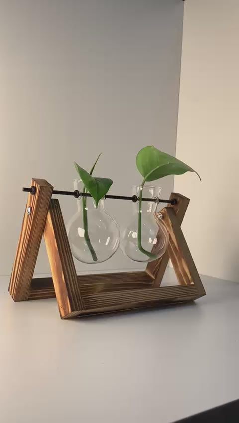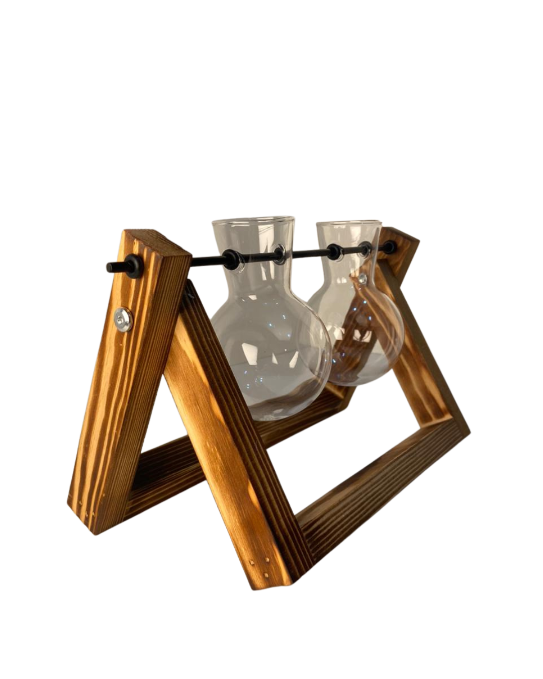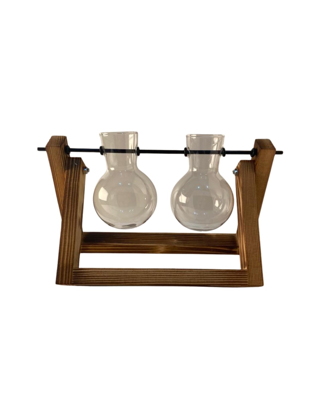 Vaso em vidro para planta hidropônica com 2 bulbos